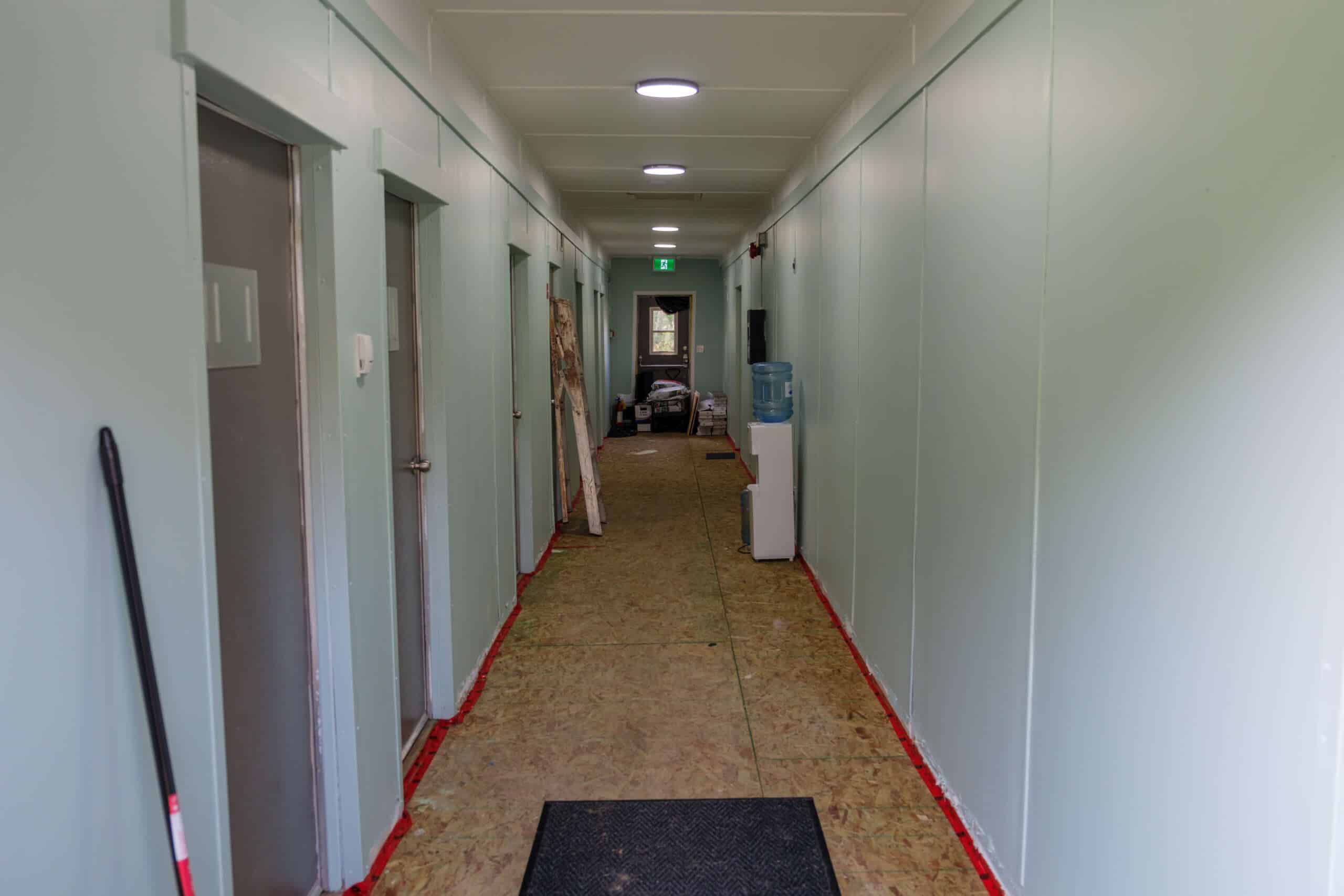 This past spring, work was completed on the roof, insulation, and electrical systems. By early summer, the plumbing and sewer were connected, and internet was installed. With these essentials in place, the building was ready for use and served as a home for our summer staff, giving them a dedicated space of their own.