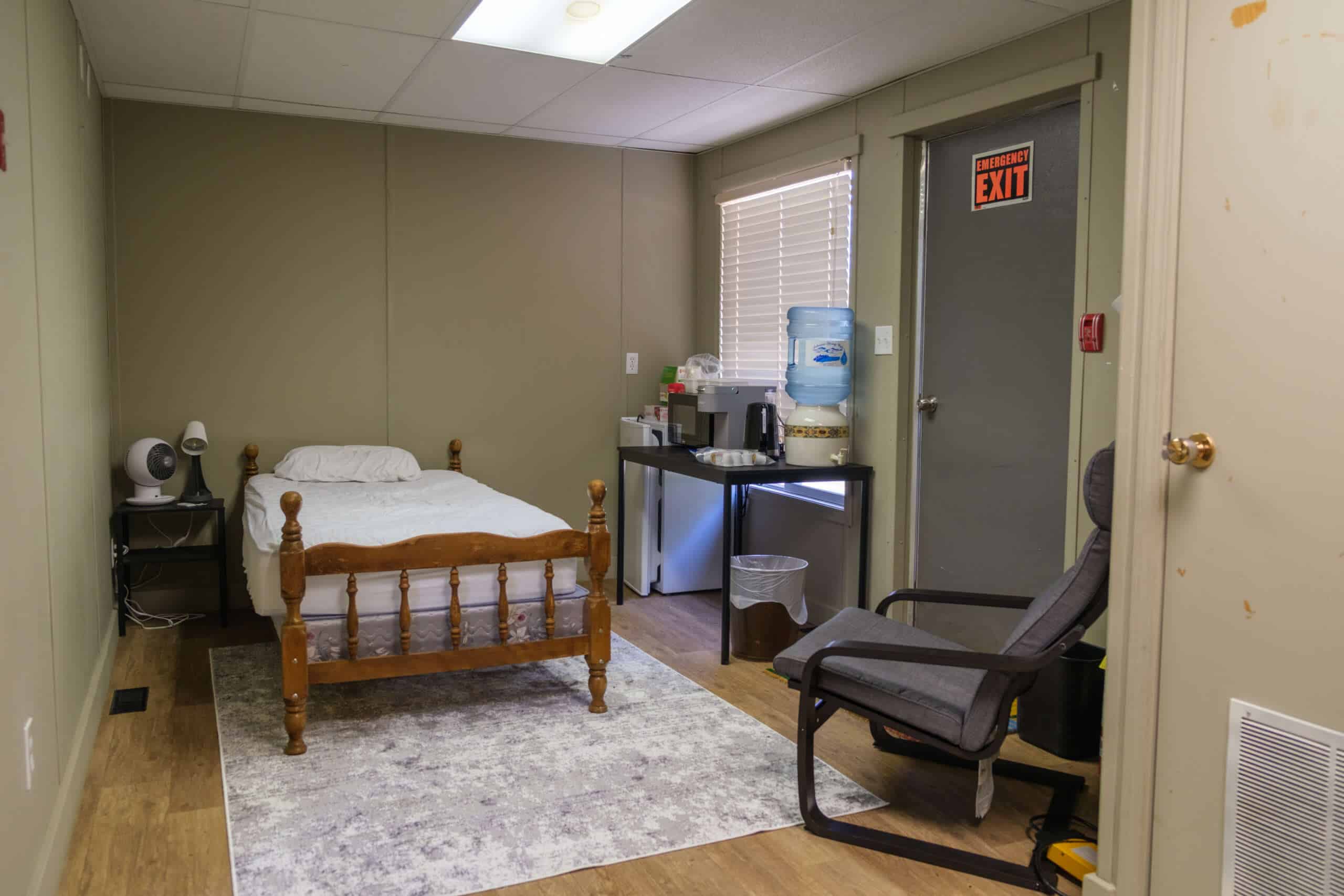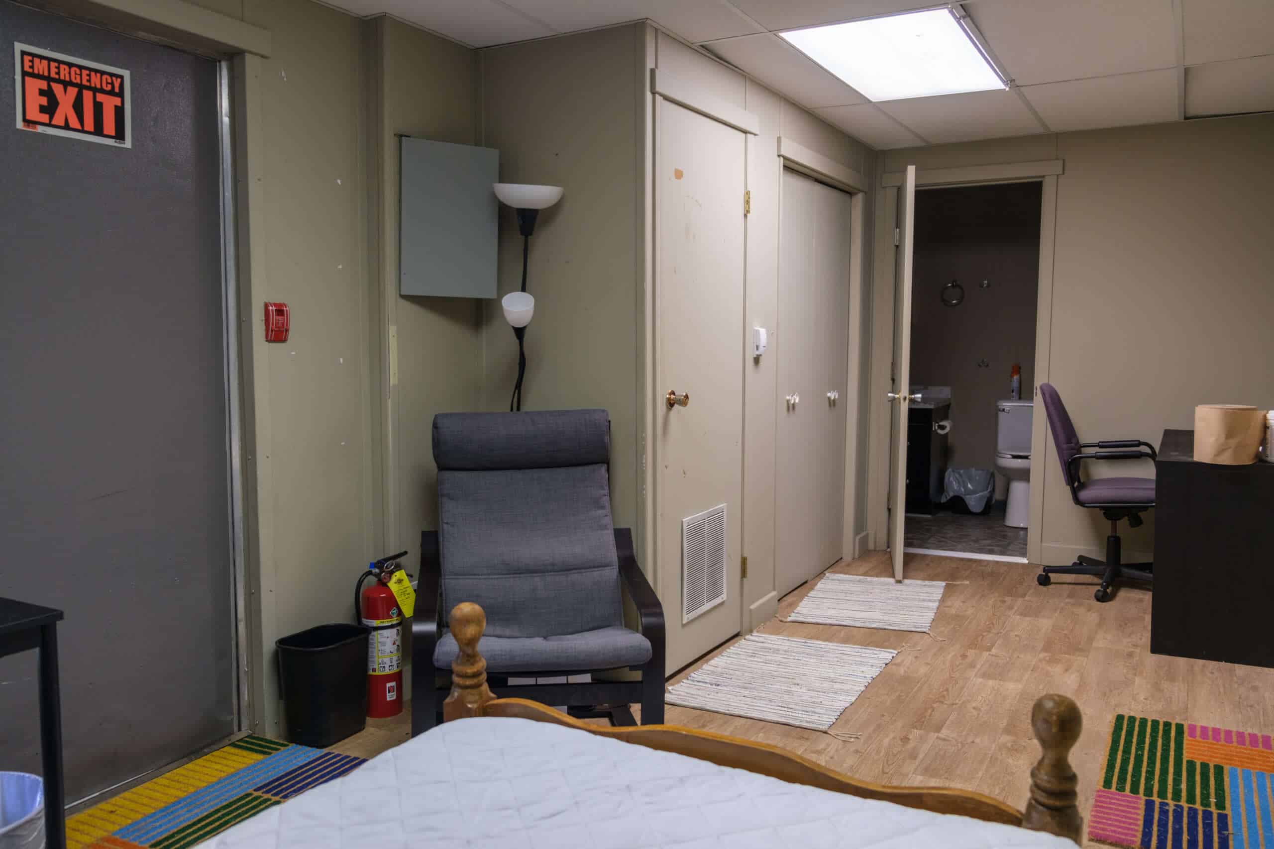 Additionally, Faith House includes a private suite, separate from the main accommodations. The suite features a single bed, an attached full bathroom, and a small desk. Its purpose is to provide working members of the church with a convenient place to stay when visiting the area for meetings or events, available for a small donation.