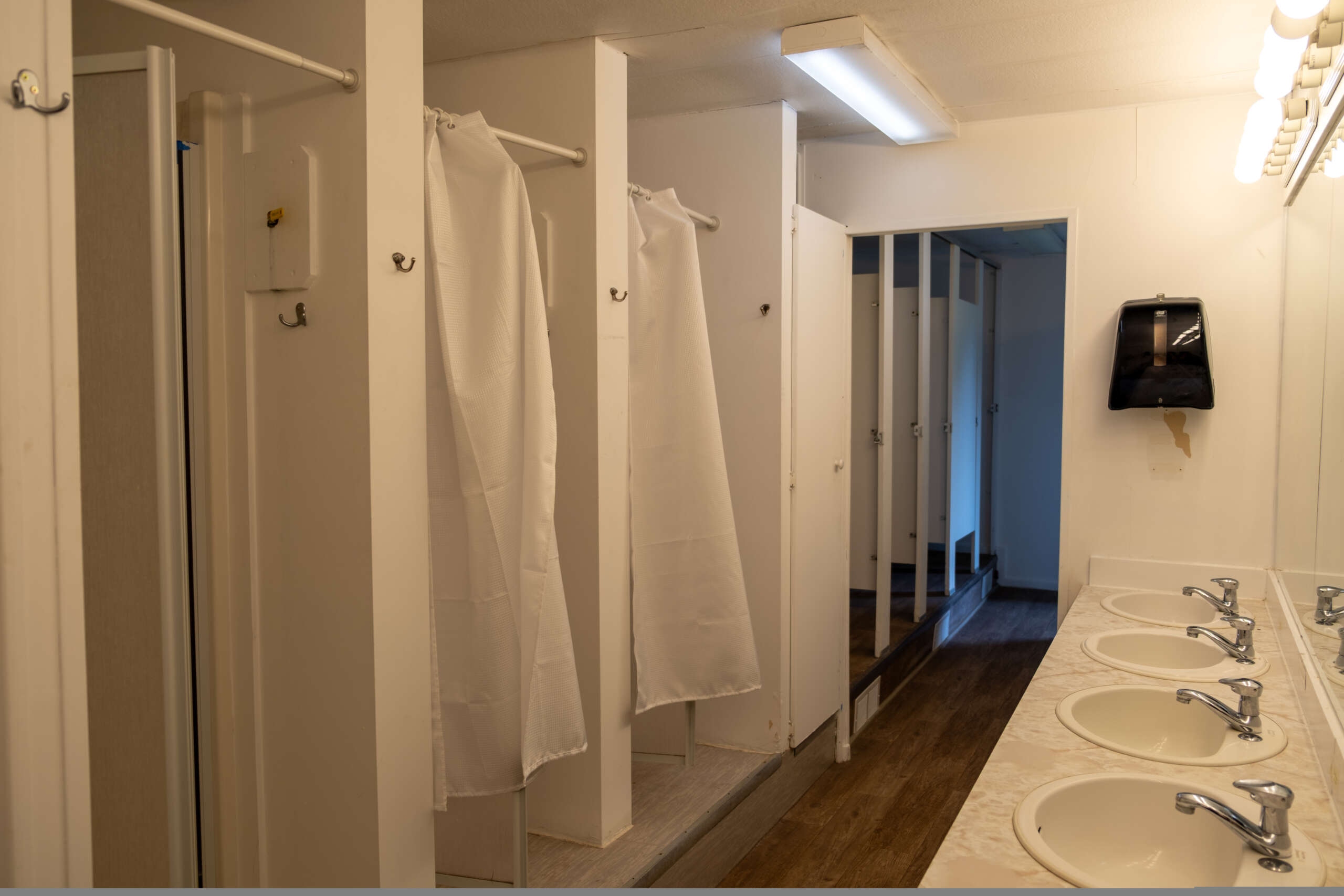 Faith House is a heated facility that provides the camp with indoor accommodations for winter use, making it suitable for groups year-round. The building features six bedrooms, each equipped with a bunk bed, accommodating a total of 12 guests. Across the hall, there is a bathroom with three showers, seven sinks, and 5 toilets to serve these rooms.
